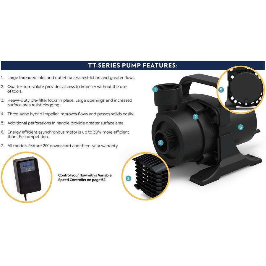 The Atlantic Complete Basin Kit for 36" Spillways ships with the Atlantic TT4000 TidalWave3 Submersible Pump. If you do not need the whole basin kit then you can get just the TT4000 pump here.