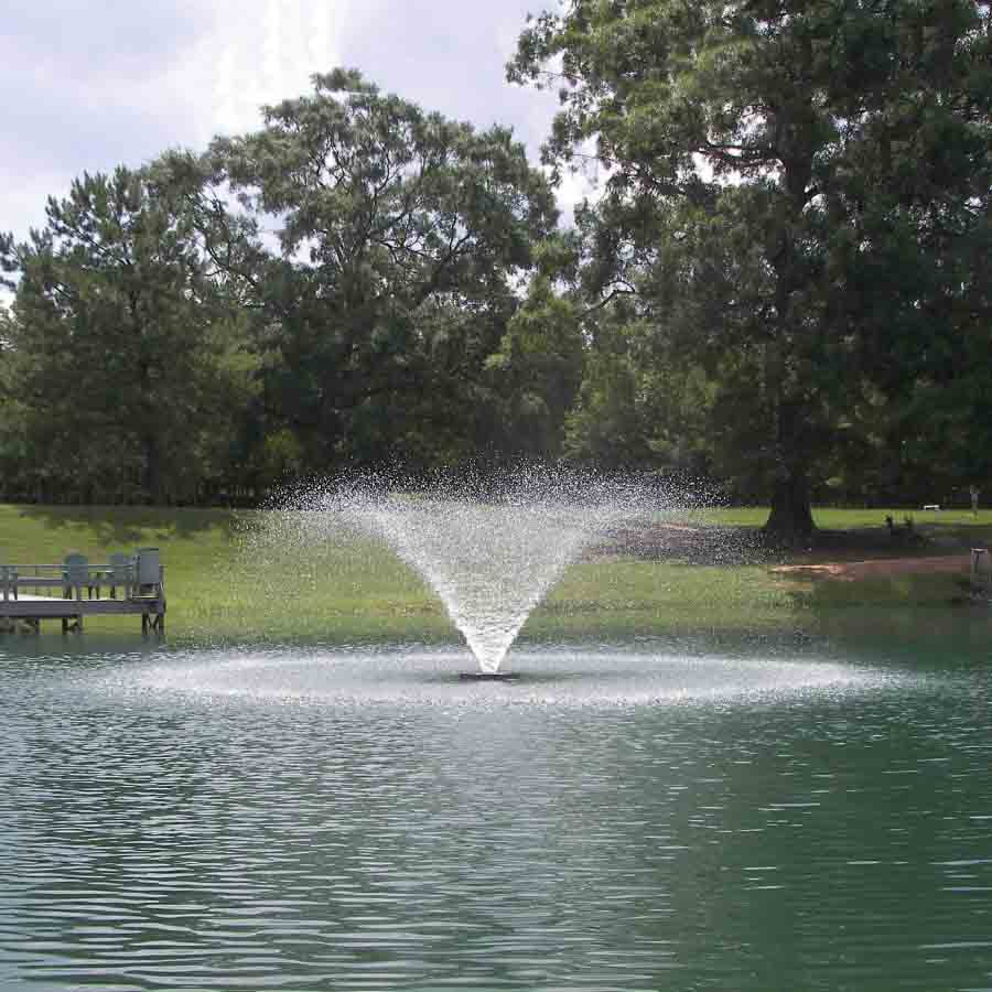 The 8 ft. tall by 26 ft. wide classic Kasco Vee fountain pattern gives this model a beautiful and dramatic display. The 1HP motor is designed for maximum oxygenation to effectively improve the health of your pond or lake, with low operating costs.